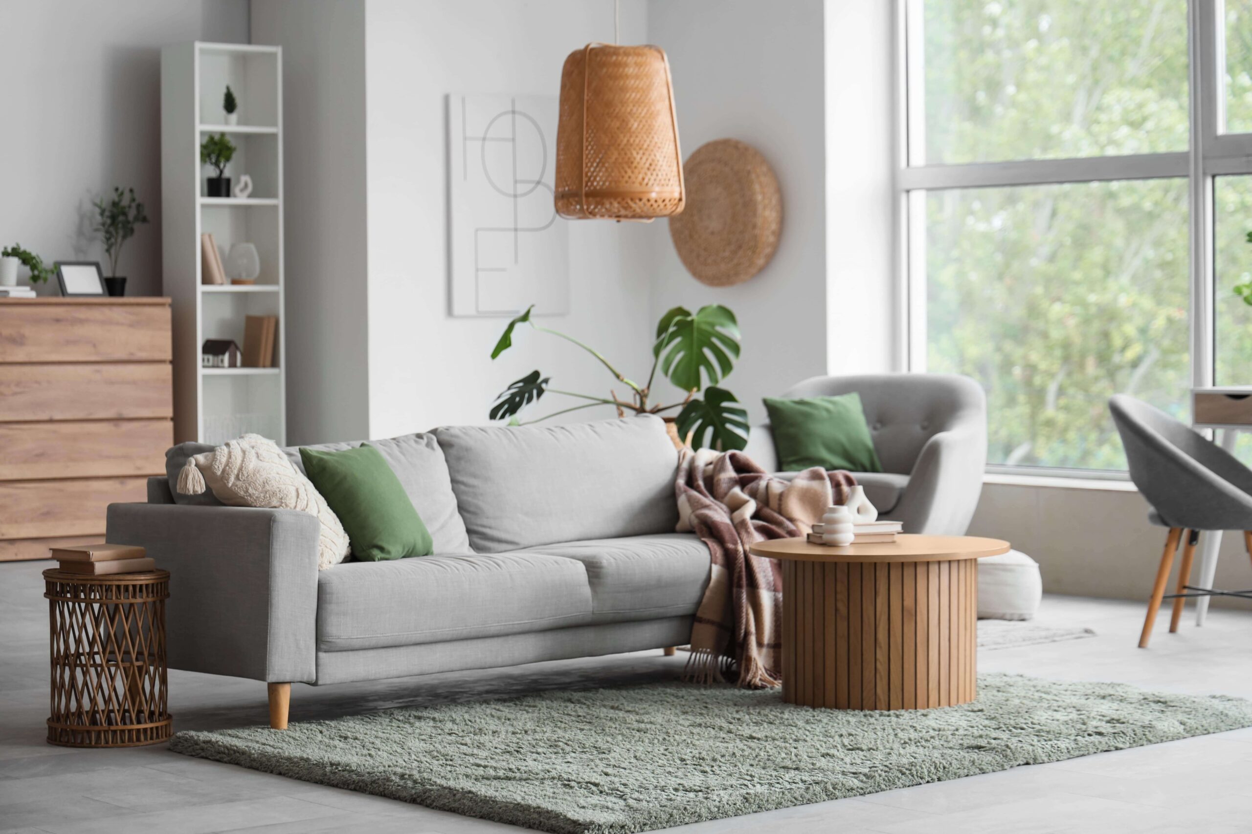 - zostaw neutralne dodatki: roślina, poduszka, koc, świeże kwiaty.
